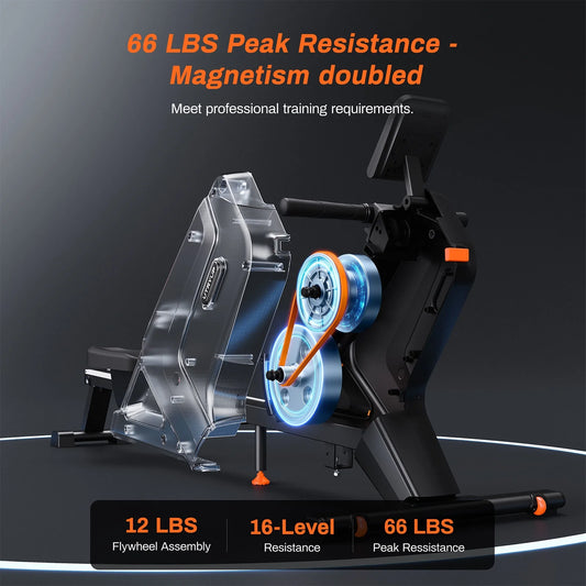 Magnetic Rowing Machine for Home 16-Level Resistance, Foldable, Bluetooth App Sync, Quiet Workout Cardio & Full-Body Training