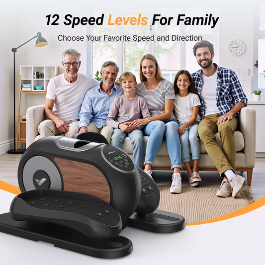 under Desk Elliptical Machine, 12 Adjustable Speeds Quiet, LCD Monitor, Portable Fitness Equipment Gift for Family with Resistance Bands